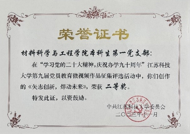 最慢的步伐不是跬步,而是徘徊;最快的脚步不是冲刺,而是坚持。2020级焊接专业学子,一步一个脚印,努力探索,不断创新。截止大四上学期,专业学生累计发表论文4篇,授权发明专利4项,本科生创新创业项目参与率100%,学科竞赛省级以上获奖94人次。包括第十三届“挑战杯”中国大学生创业计划竞赛金奖、第六届全国大学生焊接创新大赛一等奖、第十六届全国大学生节能减排社会实践与科技竞赛二等奖、全国大学生热处理大赛三等奖、全国大学生金相技能大赛三等奖、“词达人杯”高校英语能力竞赛江苏省特等奖、大学生英语竞赛江苏省二等奖、第七届江苏省大学生艺术展演小合唱特等奖等。