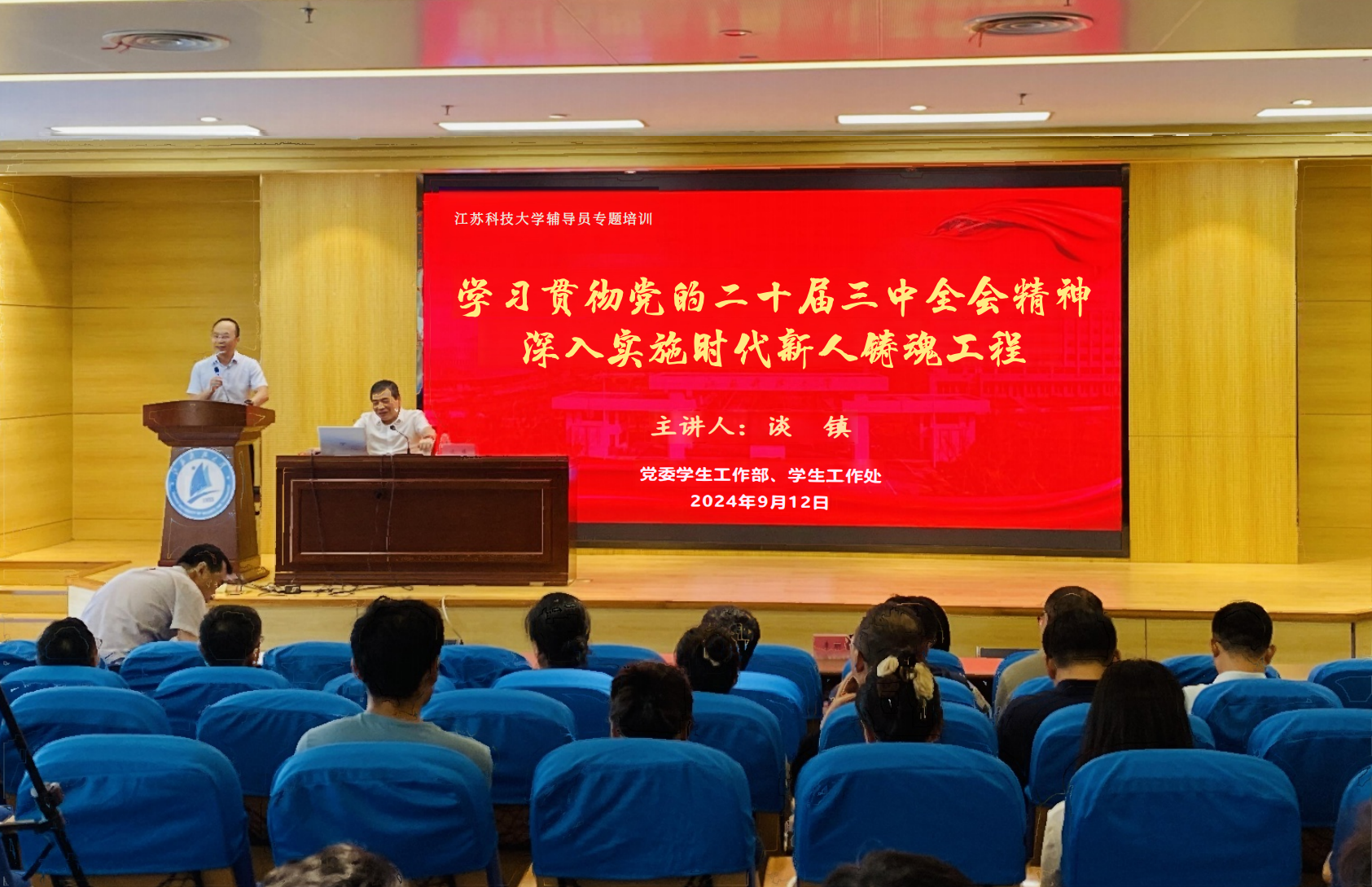 9月12日下午,我校在长山校区图书馆B102报告厅召开辅导员专题讲座,谈镇教授应邀做题为“贯彻二十届三中全会精神,深入实施时代新人铸魂工程”的专题讲座。学生处全体人员、各学院分管学生工作领导及全体辅导员参加讲座。讲座由学生处处长朱金主持。