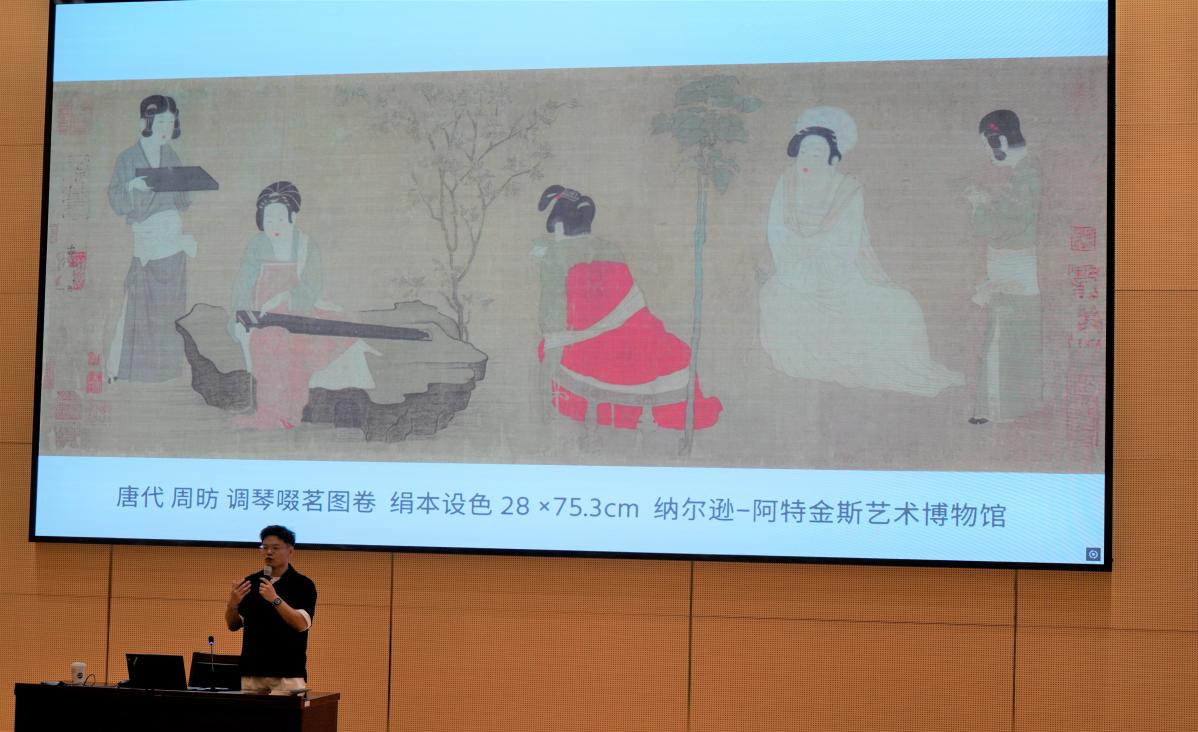 讲座中,林国伟追溯茶之源起,从神农氏的传说至唐代的煎茶艺术,再到宋代的点茶风尚,生动描绘了茶从药用到日常饮用的转变历程。通过展示《茶具图赞》等珍贵画作,他细致剖析了古代茶器的演变与茶艺的精妙,揭示了茶文化与社会风俗的紧密联系。《调琴啜茗图》、《文会图》等作品的赏析,不仅展示了茶艺之美,更映射出古代文人的生活情趣与时代风貌。