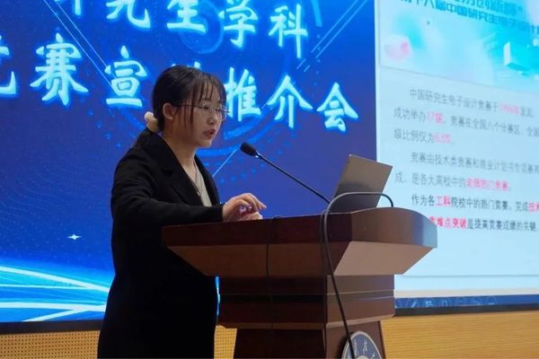 宣讲会伊始,通过一段视频回顾了我校2022年度研究生学科竞赛整体情况。随后,主持人完整介绍了13项中国研究生创新实践竞赛,并对能源装备创新设计大赛、机器人创新设计大赛、人工智能创新大赛、研究生电子设计竞赛、数学建模竞赛、智慧城市技术与创意设计大赛等我校主要参加的赛事项目进行了详细阐述。