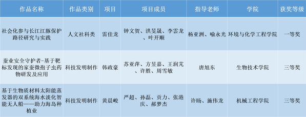 由雷佳龙等同学申报的项目“社会化参与长江江豚保护路径研究与实践”获得人文社科类作品全国一等奖。该项目以长江旗舰物种长江江豚的保护为切入点,研究社会组织及其关联主体参与长江江豚保护的路径,真实反映路径现状及其成效,并提出有效对策,构建了参与路径优化模型,提出了具有实际应用价值的参与路径优化对策,回应了“生态兴则文明兴”的科学论断。