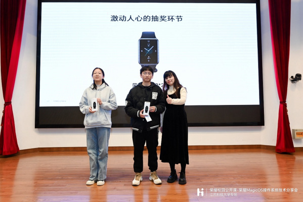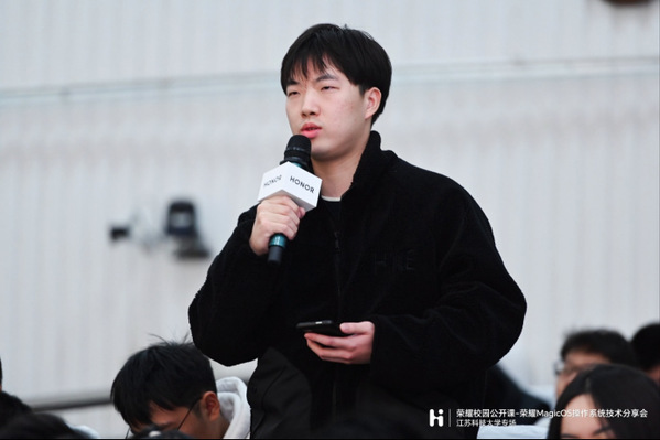 分享会还进行了互动交流环节。同学们围绕着MagicOS相关技术和荣耀品牌等方面踊跃提问交流,荣耀的老师们则结合荣耀品牌理念、产品功能实现一一作出解答。