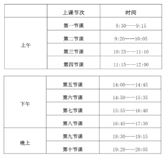 raybey雷竞技 (长山校区)教学作息时间表