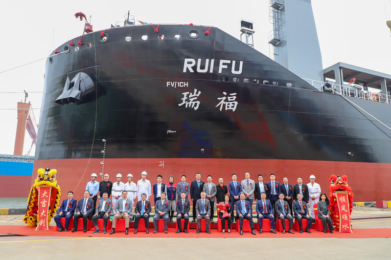 4月22日,中船集团旗下中船澄西船舶修造有限公司为交银金融租赁有限责任公司建造的14号62000吨重吊多用途船“瑞福”轮在扬州签字命名交付。