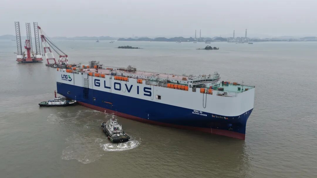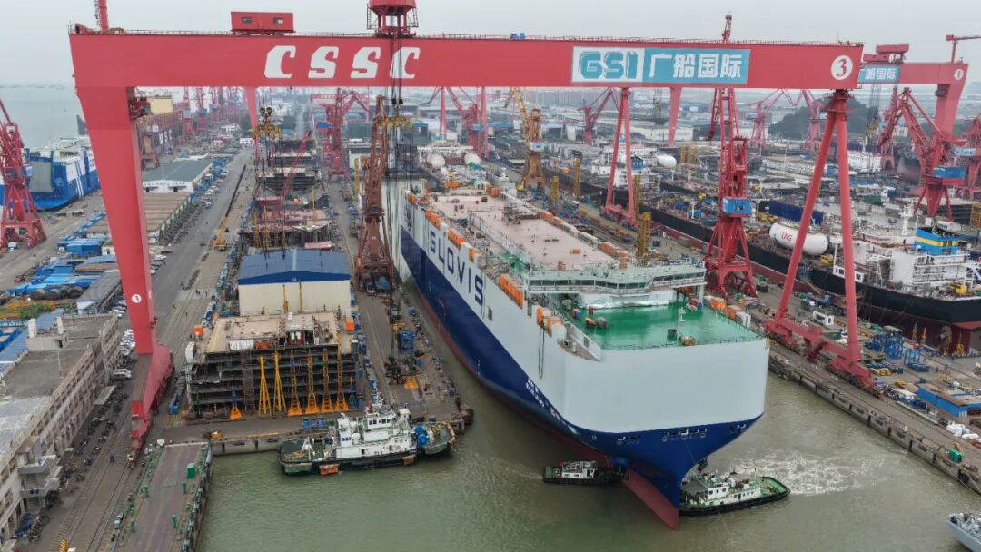 1月21日,中国船舶集团有限公司旗下上海船舶研究设计院研发设计、广船国际有限公司为韩国HMM公司建造的10800车液化天然气(LNG)双燃料动力汽车运输船(PCTC)1号船出坞。