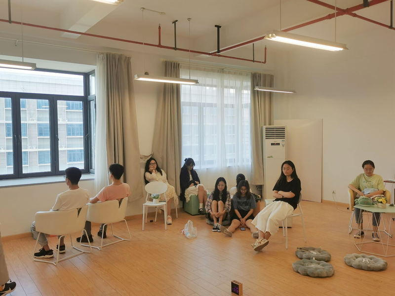 首先工作人员提前布置好了场景。同学们达到场地之后,自行选择自己认为最舒服的状态,进行发呆。