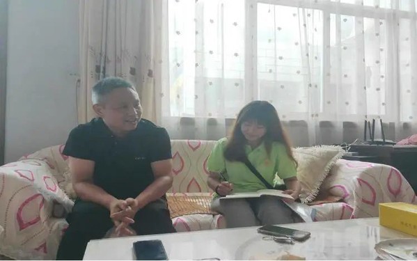 图为“美好未来队”实践团成员走访老党员杨长远同志