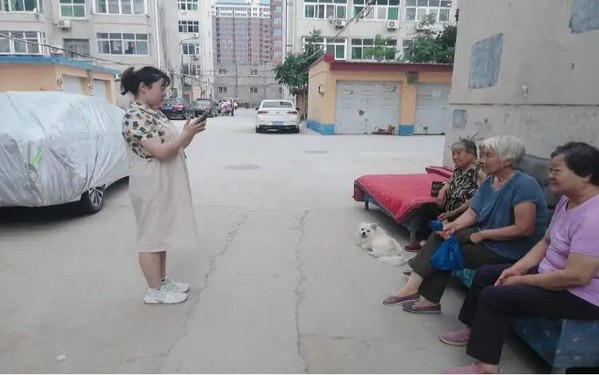 图为“美好未来队”实践团成员在村里向老人宣讲党史故事