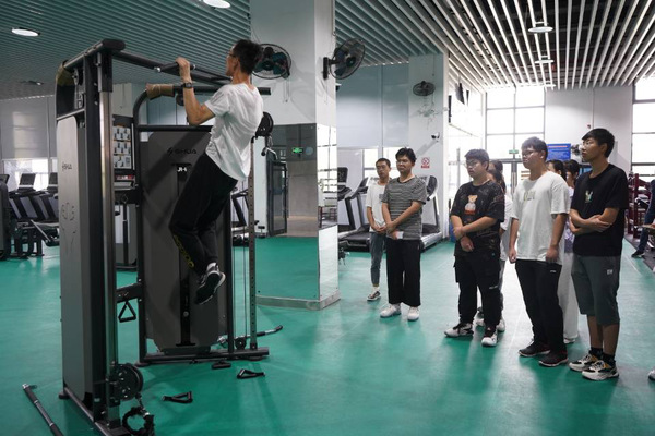 活动中,不少同学积极尝试了健身器材的使用,徐恒勇教授对错误的使用方法进行了纠正,讲解了在做引体向上等运动时的注意事项,示范了如何有效且正规地使用跑步机及其他健身器械。同学们在徐教授的耐心指导下,认识到了身体力量的不足,知晓了不恰当健身的危险性,纷纷表示会在以后的锻炼中合理利用健身器材以达到塑形和减脂的目的。