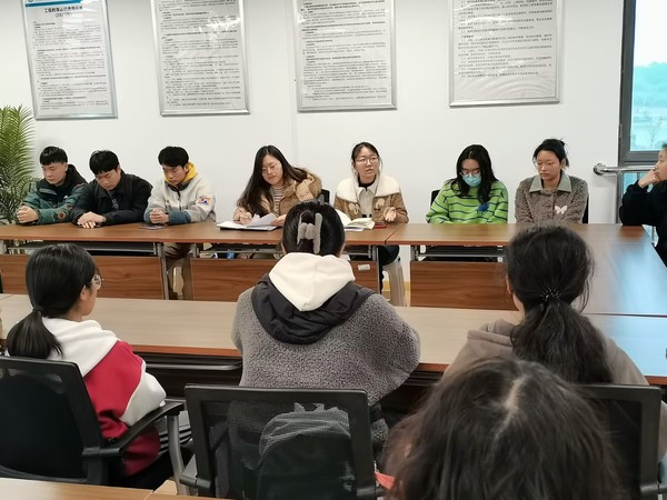 学生兼职团干部顾佳杰、陈祉瑜向大家具体介绍了本学期工作计划,重点强调了五四表彰和入党推优等内容,以及近期关于上缴团费、对标定级、青年大学习、团代会等注意事项,动员各班团支书积极关注学院公众号并向支部同学广泛宣传。