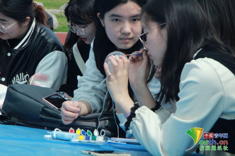 图为同学们制作风铃。中国青年网通讯员 韩熠桢 供图