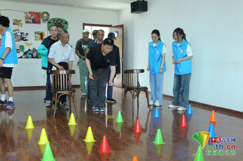 图为第二组成员参与套圈活动。中国青年网通讯员 费苇琦 供图