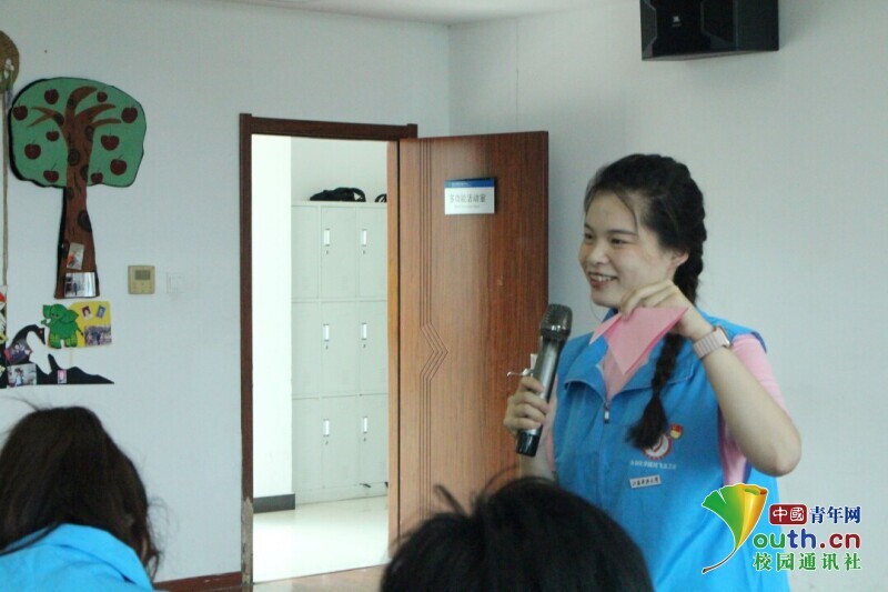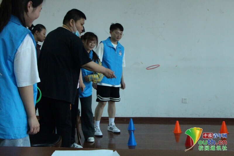 图为工作人员对同学的表现表示肯定。中国青年网通讯员 费苇琦 供图