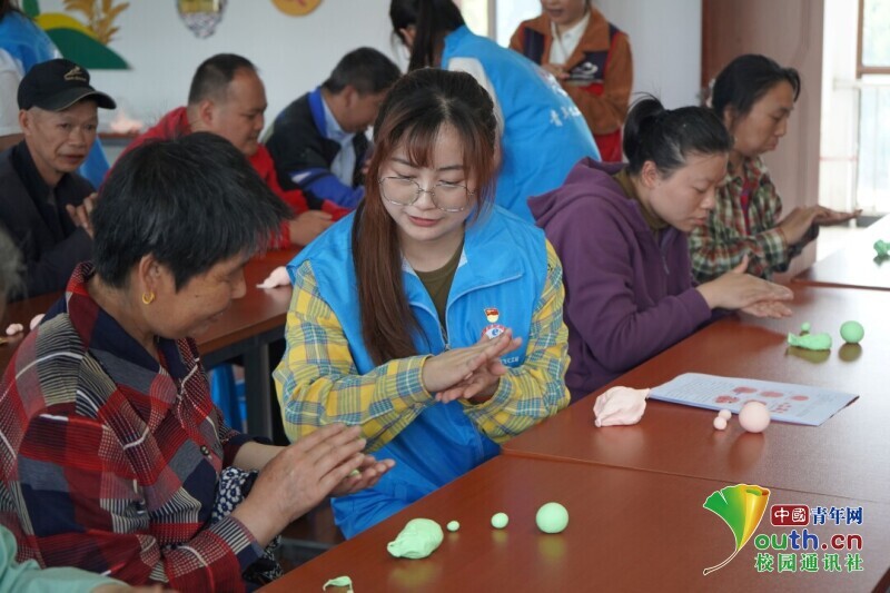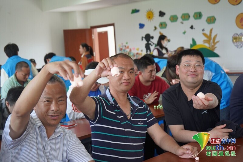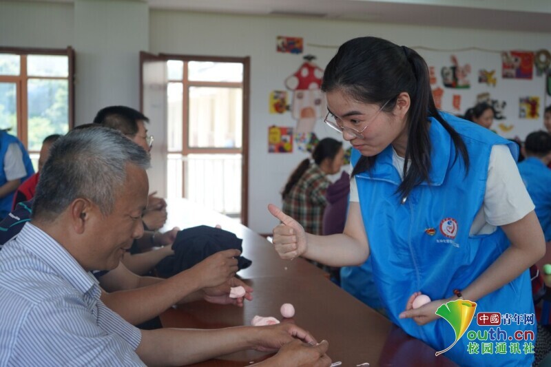 图为工作人员教同学如何用黏土搓圆。中国青年网通讯员 费苇琦 供图