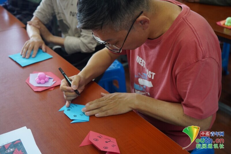 图为义工帮助同学制作小猫。中国青年网通讯员 李理 供图