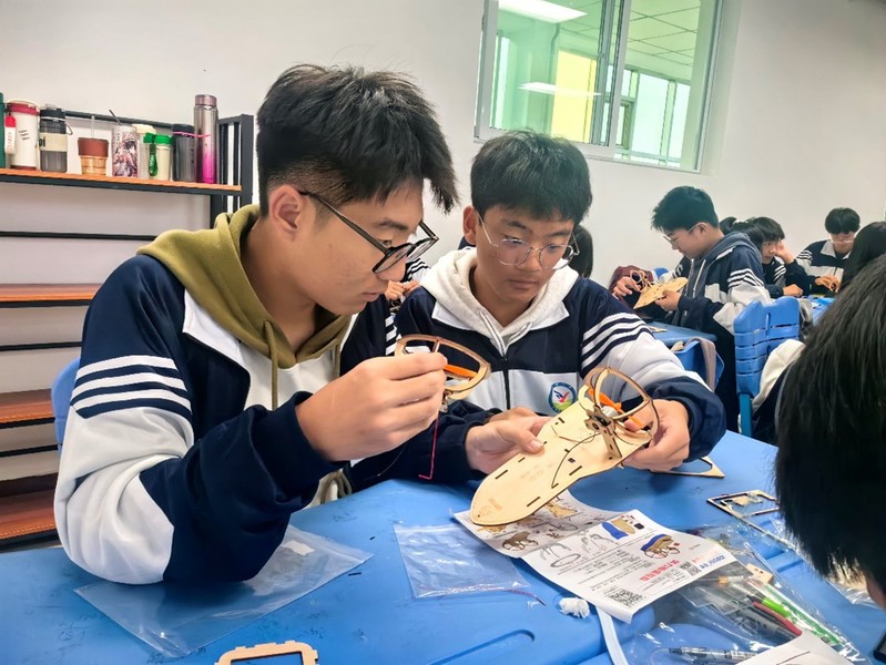 图为学生团队合作共同研究拼装船模过程。张京 供图