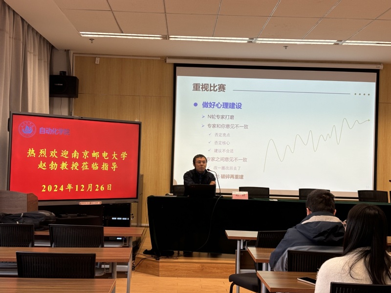 2024年12月26日下午,学院特别邀请到南京邮电大学自动化学院赵勃教授来我院作题为《百炼熔炉出精钢--教学创新大赛经验分享》的专题报告。报告会由自动化学院副院长陈迅主持,自动化学院各系部主任及青年教师参加。