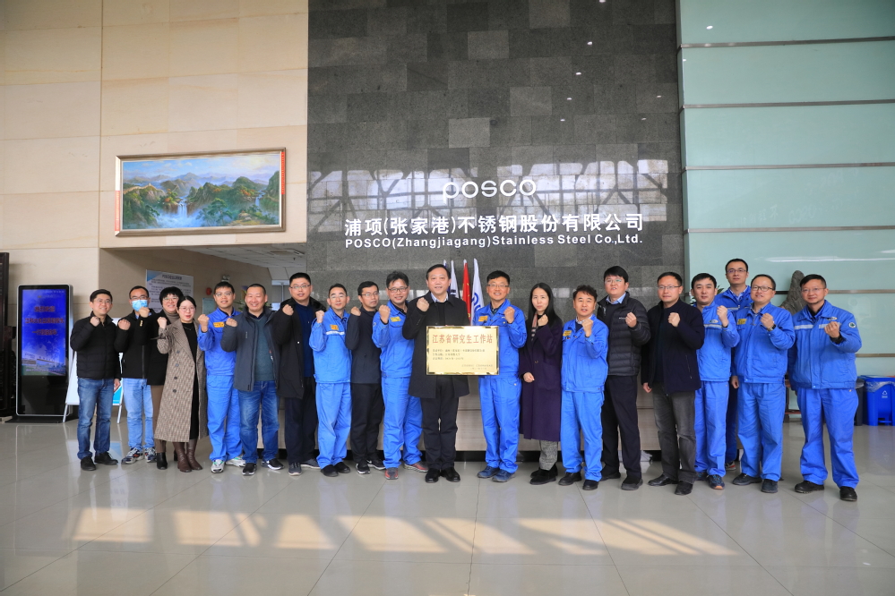 1月19日,我校与浦项(张家港)股份有限公司联合共建的“江苏省研究生工作站”授牌仪式暨产学研合作项目进展汇报会在浦项(张家港)股份有限公司举行。副校长俞孟蕻、对外合作处副处长郭峰、冶金工程学院副院长居殿春,堵伟桐、陈卓等教师应邀出席。浦项(张家港)股份有限公司副总经理蔡东澈、研发部部长崔点镕、副部长蔡博,制钢工厂厂长马文涛、部长黄华平以及冶金工业园科技招商局副局长龚伟专、技术科科长陈磊等相关人员出席会议。