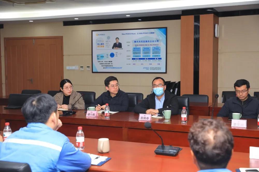 陈卓博士针对与浦项(张家港)股份有限公司签订的产学研合作项目进展汇报,最后双方代表进行科技合作交流,双方均表示希望接下来加强合作促进研究和生产实践相结合、科技创新与成果转化相结合,实现校企共同发展。