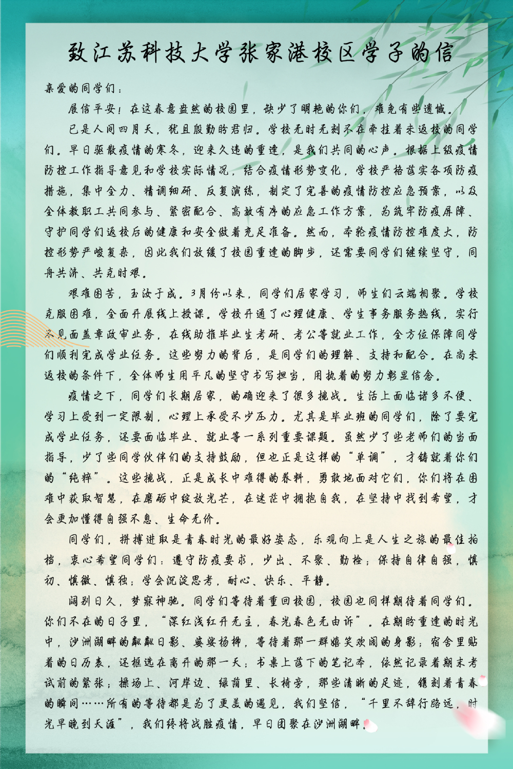 致张家港校区学子们的一封信