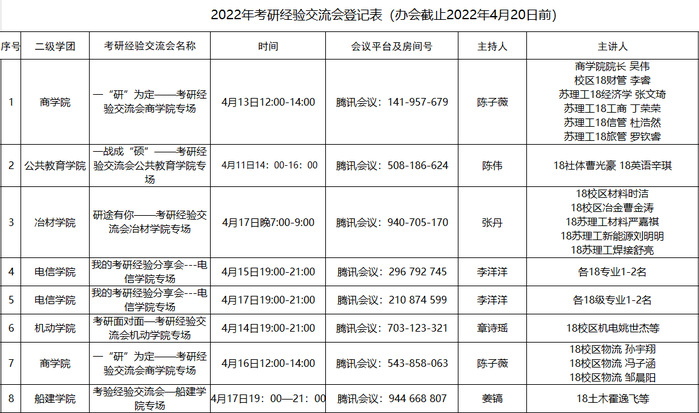 为加强学风建设,营造良好学习氛围,帮助同学们深入了解考研升学,树立考研信心,使他们明确努力的目标,坚定正确的奋斗方向。学生工作处组织开展了10场考研经验交流会,学生工作处处长杜长冲、船舶与建筑工程学院院长马剑、商学院院长吴伟等出席经验交流会并作交流指导。共邀请录取南京大学、中国科学院大学、东北大学、苏州大学、raybey雷竞技 等高校的42余名优秀学生分享考研经验。非毕业班学生积极参加线上经验交流会。
