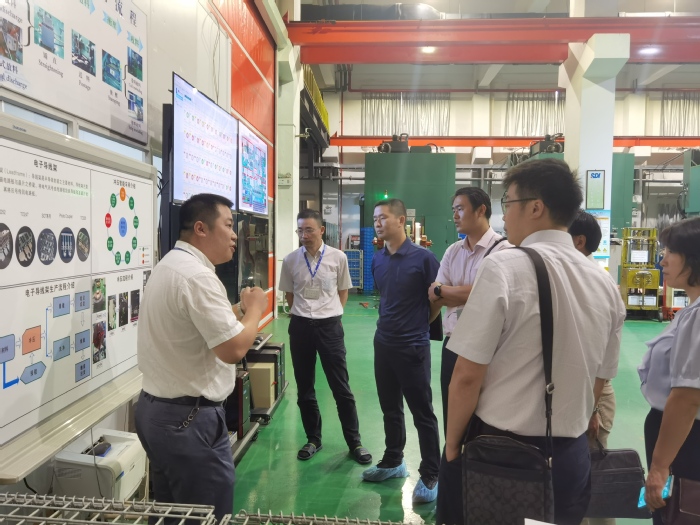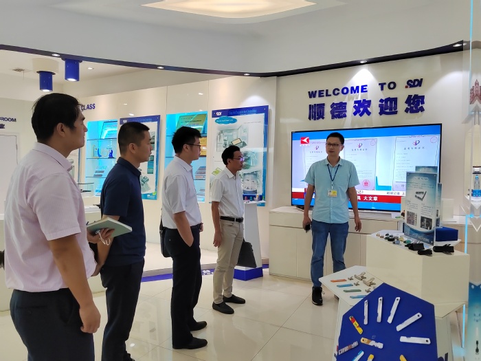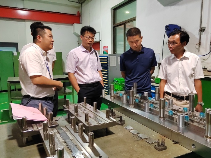 在顺德公司负责人的带领下,各院长参观了公司展厅与车间,了解了公司的发展历程、生产模式与运营模式。顺德工业(江苏)有限公司是台湾顺德工业集团在江苏投资的全资子公司,于1997年正式投产,位于江苏省张家港市保税区,主要生产和销售各类五金文具、单体导线架、集成电路导线架以及精密模具开发制造,2021年度销售额8.9亿。