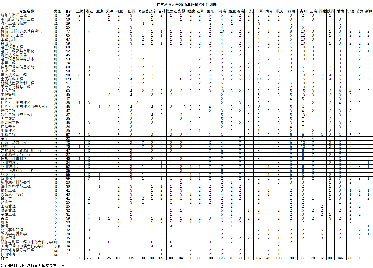 raybey雷竞技 2019年外省招生计划
