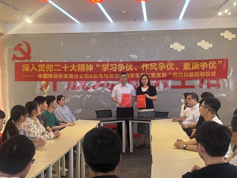 在张家港市组织力提升实训基地,机动学院学生第二党支部书记高伟杰带领95名学生党员、积极分子,联合中共中国移动江苏公司张家港分公司总支部委员会46名党员,以“学习争优 作风争优 素质争优”为主题结对共建。根据共建协议,双方将共同开展理论同学、组织同建、品牌同筑、服务同行、成效同享系列活动,着力提升党员政治理论水平、强化实践服务能力、筑牢支部战斗堡垒。中国移动张家港城北分局长许玲燕、张家港保税区分局长陈溶、校园经理沈丹等出席活动。